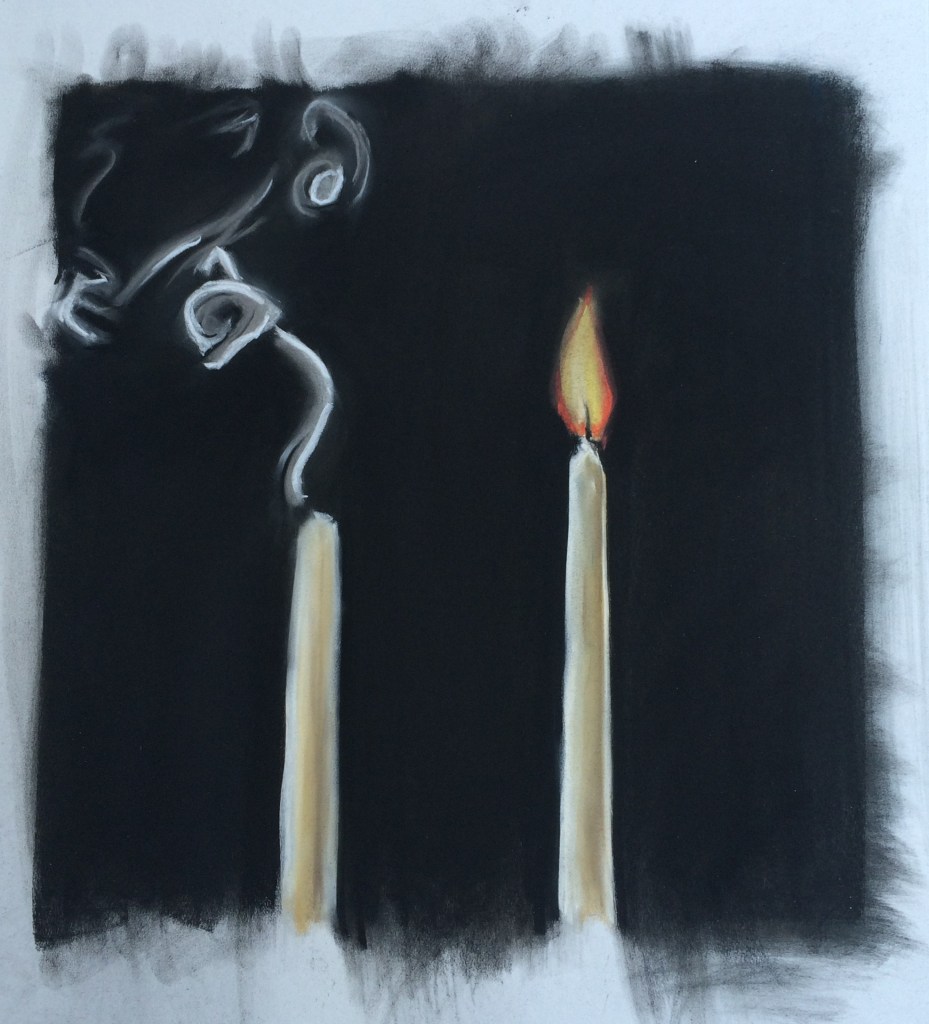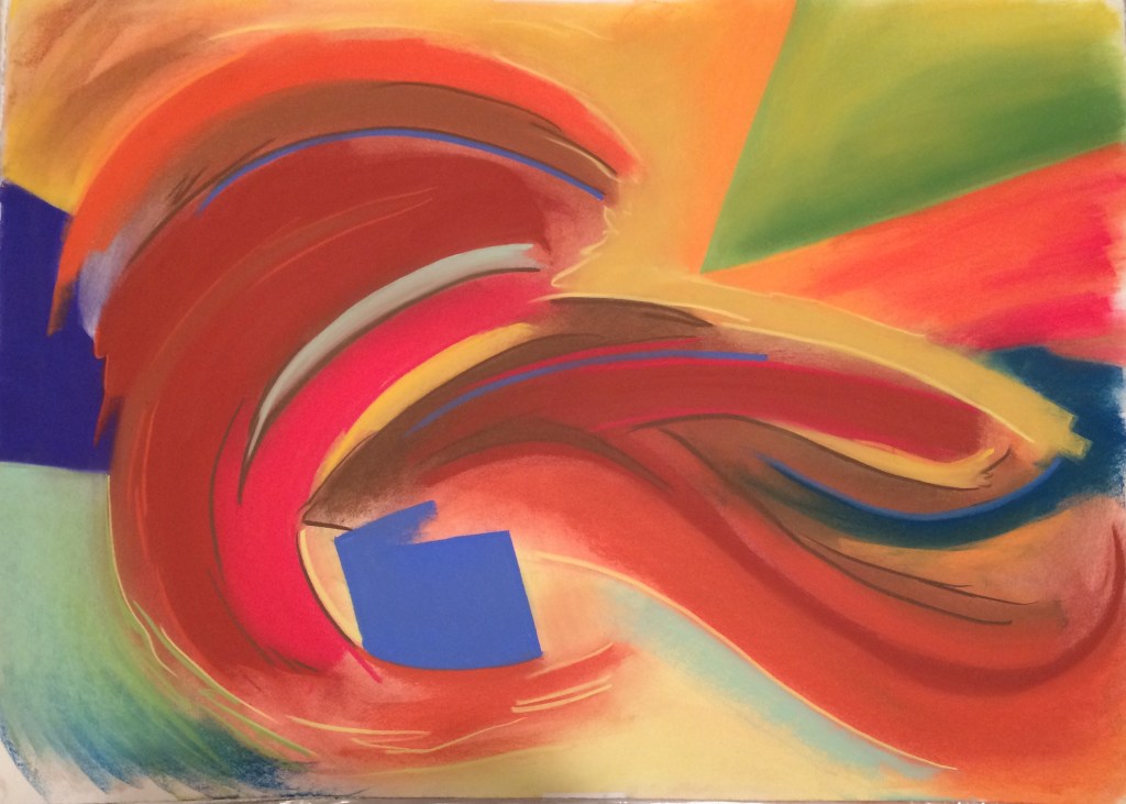 Roughly 24″ x 36″ Pastels, pastel pencils, and ink on paper.