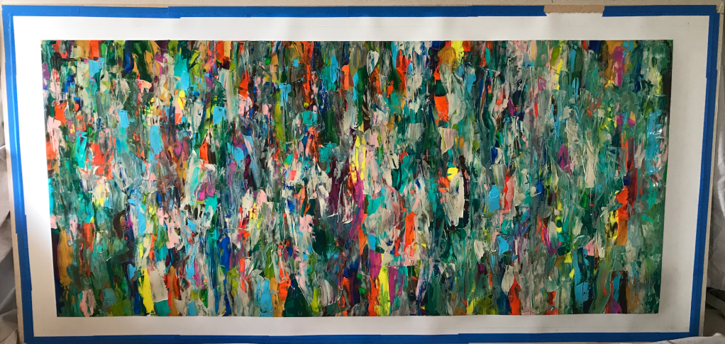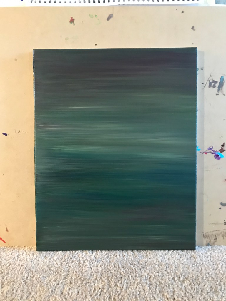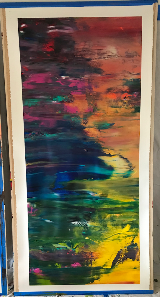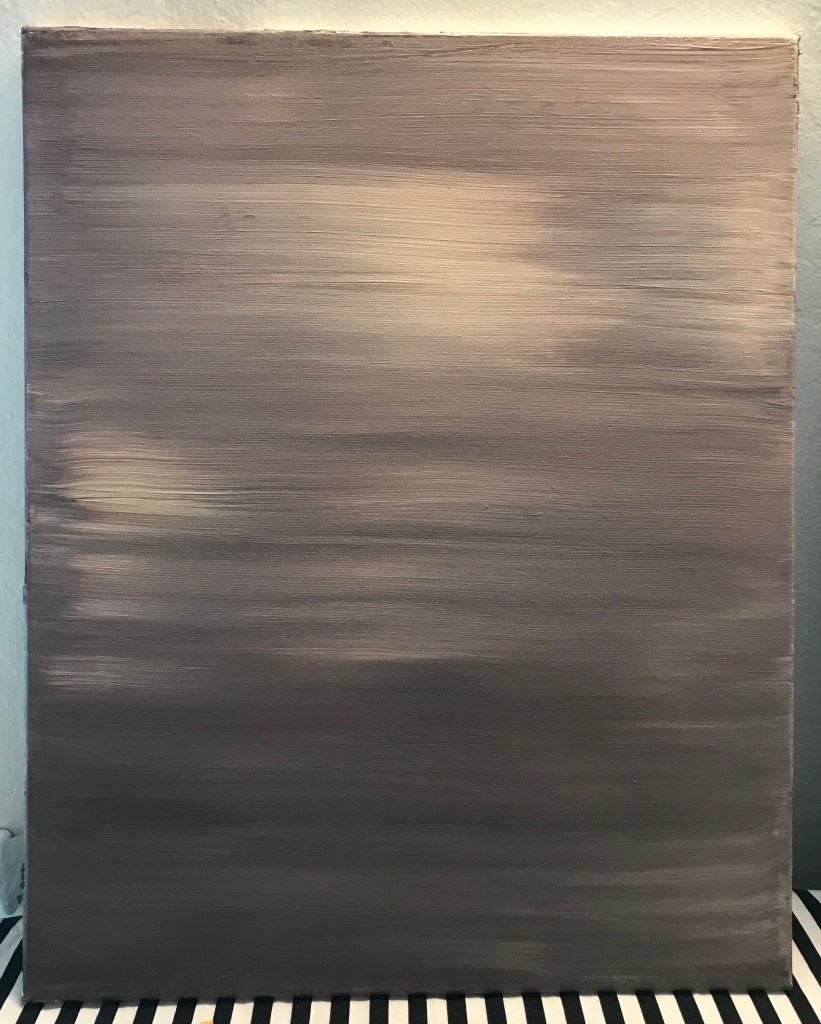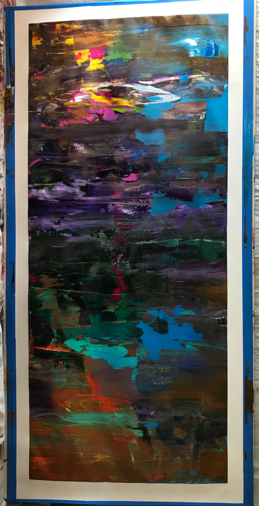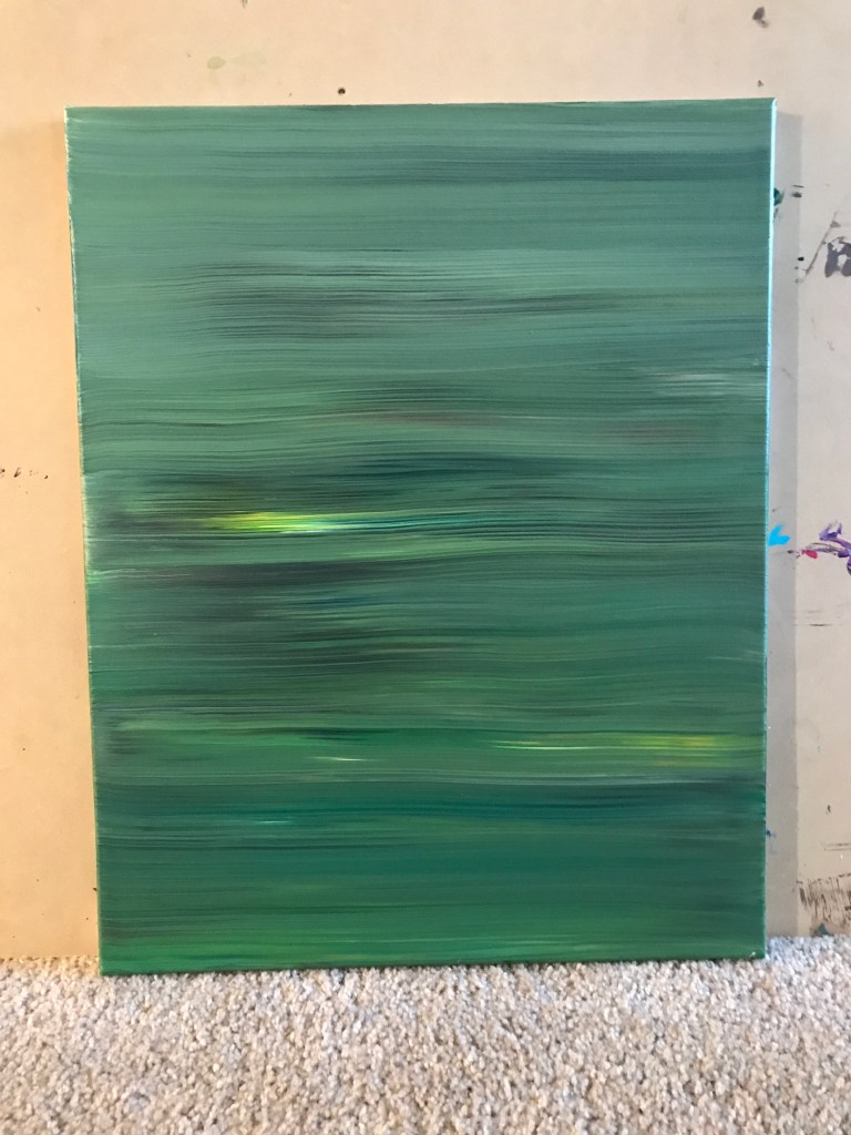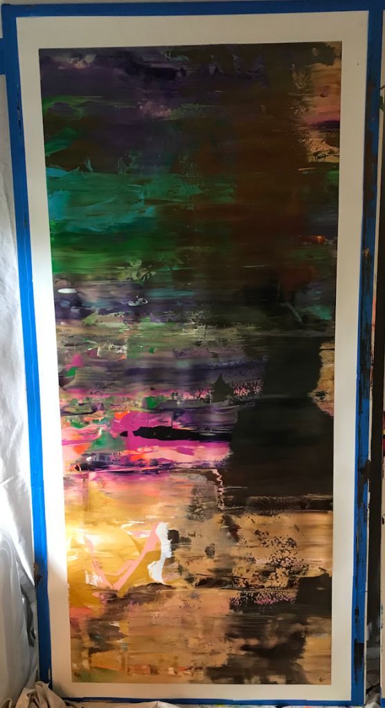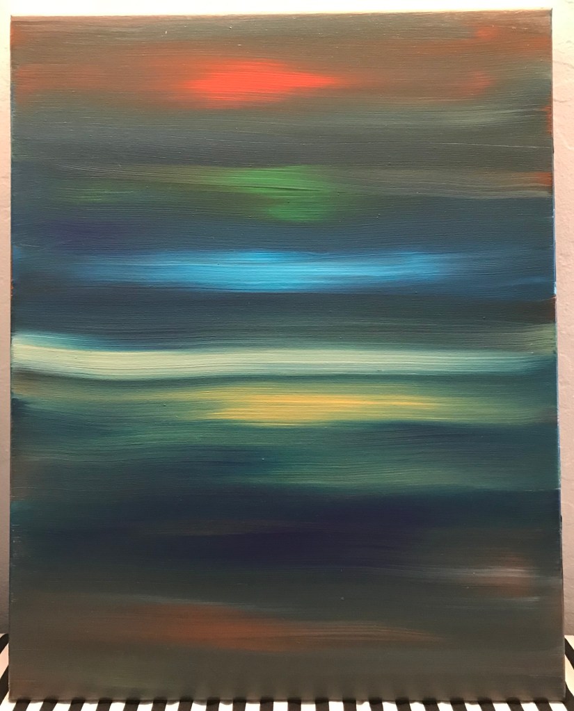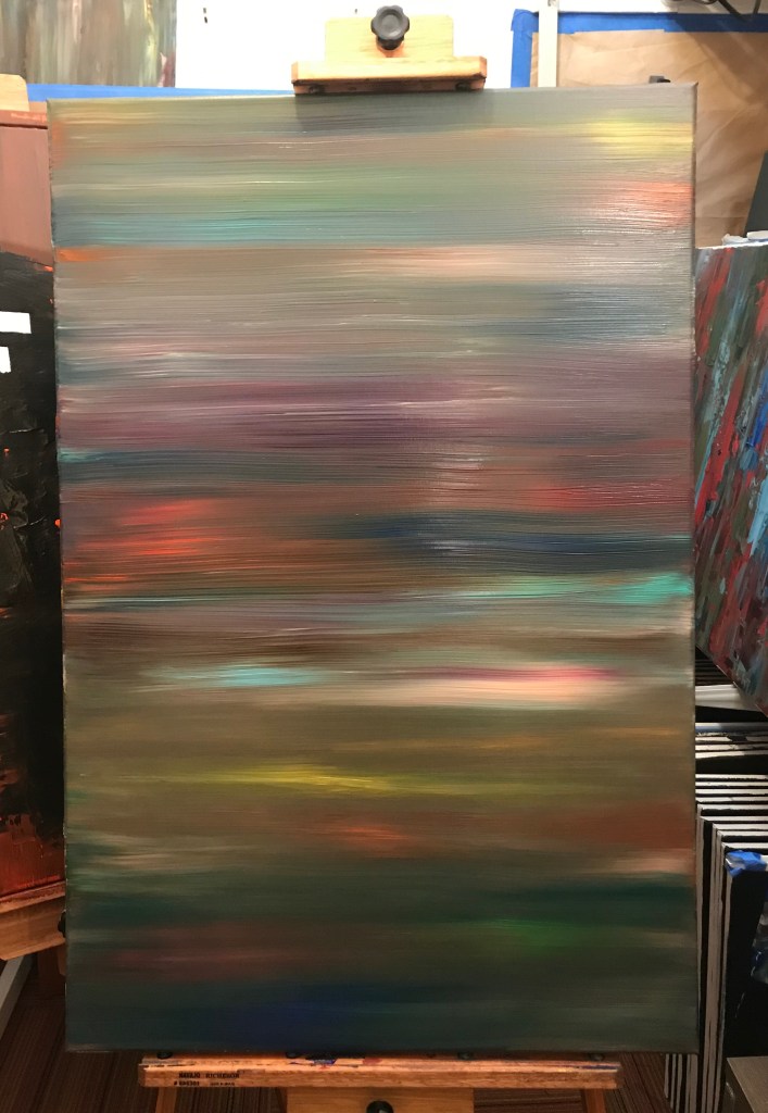 I’ve also started making “streak paintings” wherein paint is applied, liberally, directly to a canvas and mixed together through repeated horizontal brush strokes.